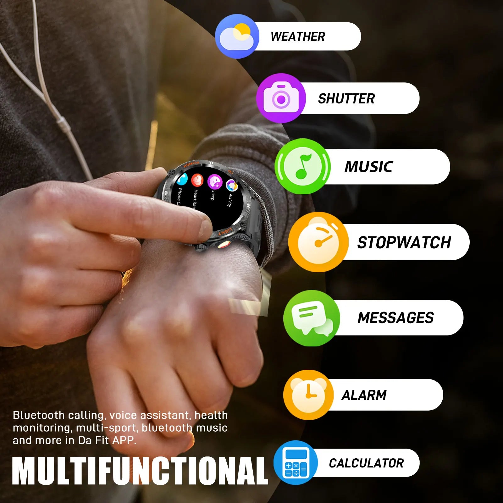 - Stay connected: Bluetooth 5.3 with the Da Fit app delivers call and message reminders, push notifications, remote music control, and quick access to apps on your wrist.