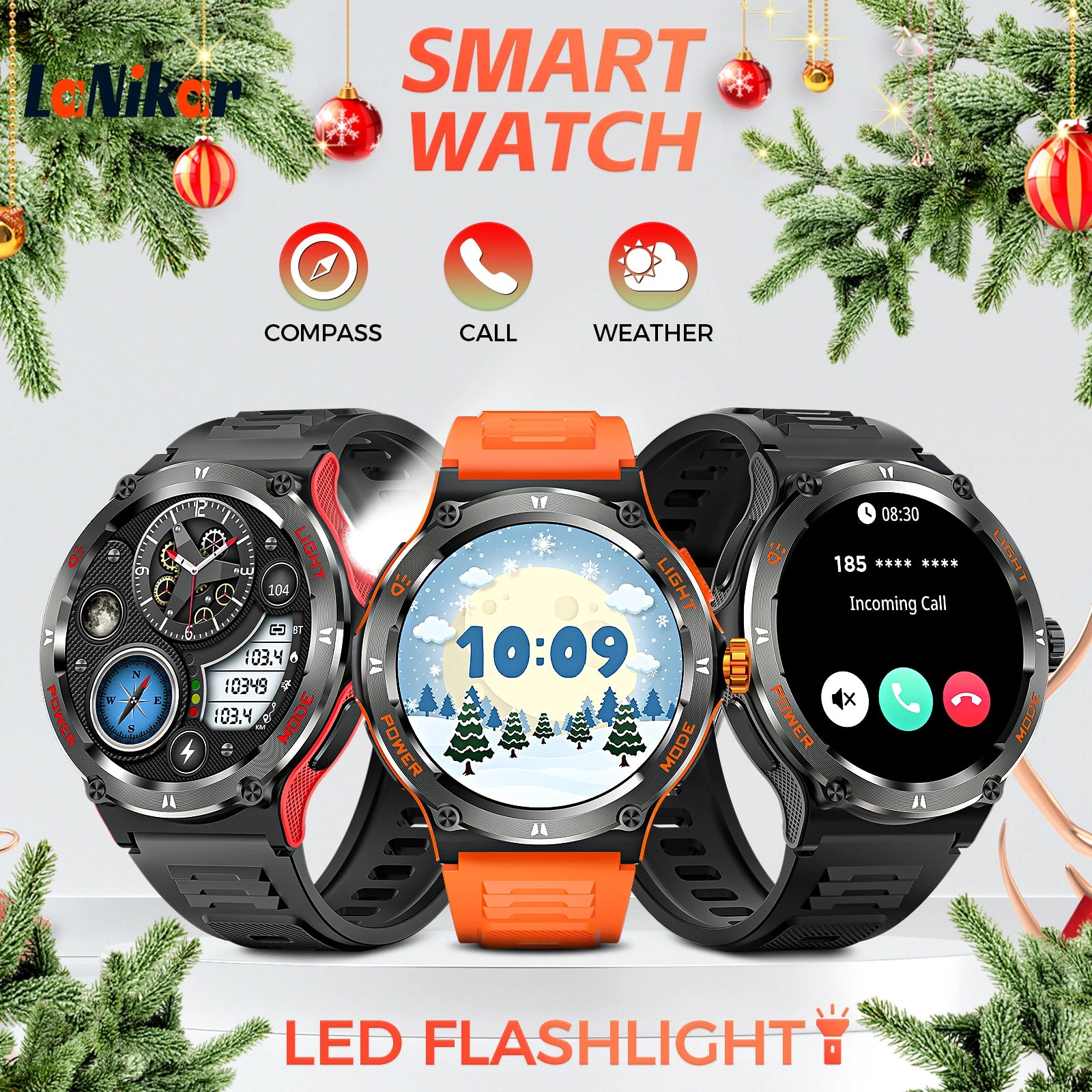 LaNikar KT76 Smartwatch 3ATM Waterproof Heart Rate Sleep Tracking Bluetooth